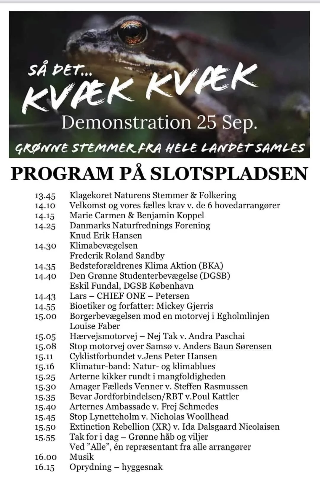 Borgergrupper og NGO’er fra hele landet går fælles i en stor demonstration i Københaven d. 25. september, og det er kun begyndelsen. Vi bliver ved indtil politikerne vågner op og tager ansvar for Klima, Natur og Trivsel.